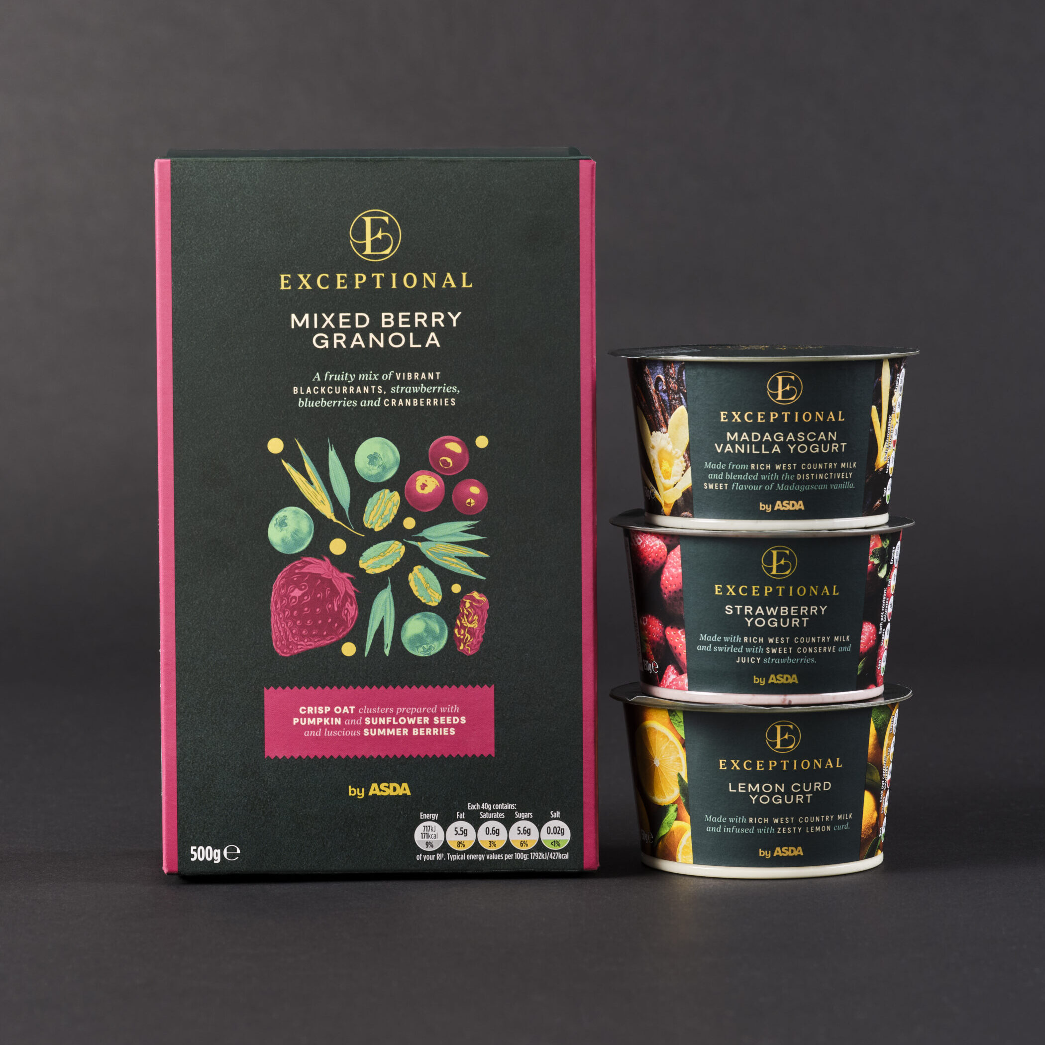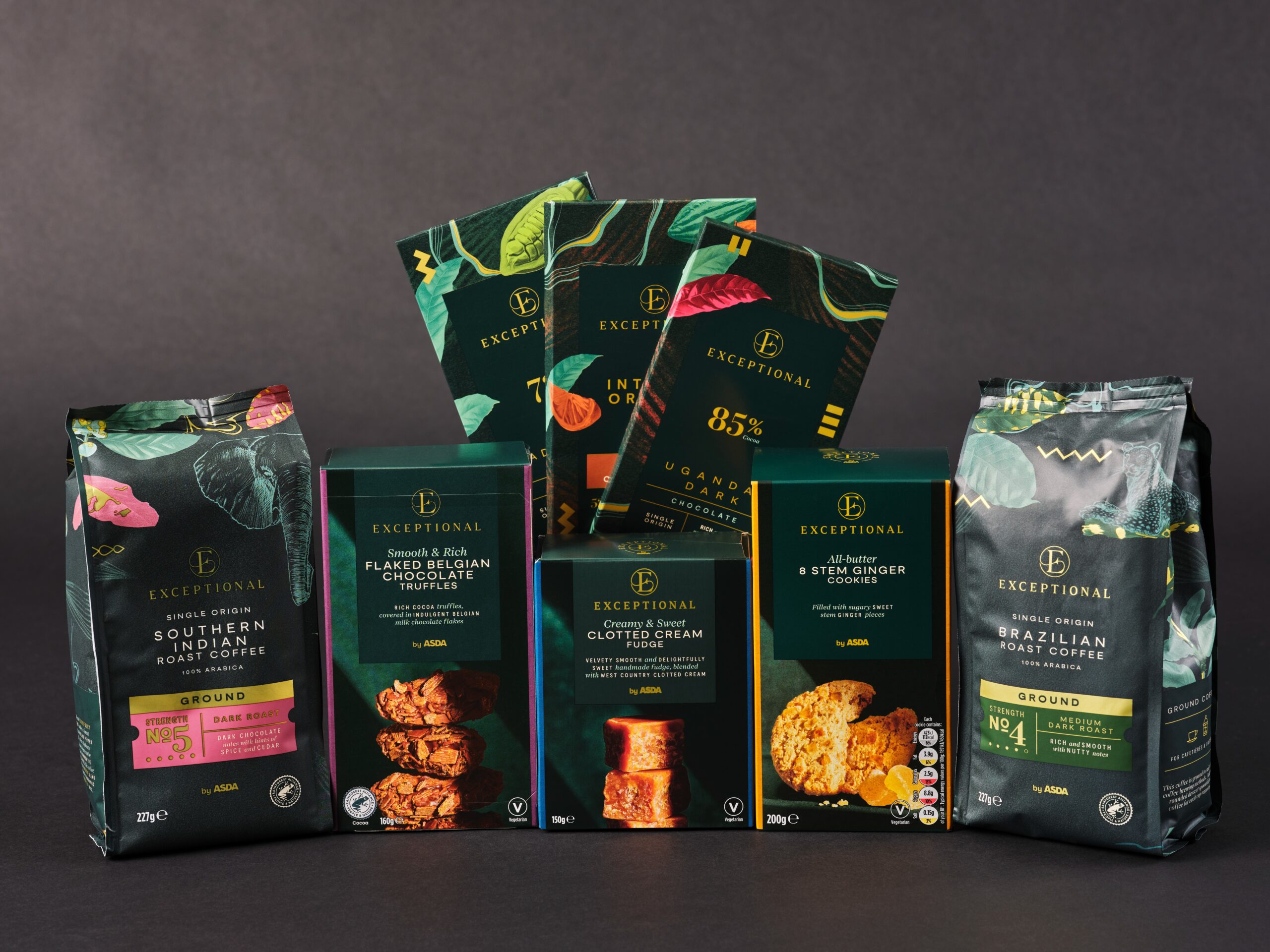 Our collaboration with Asda began in 2024 to support the launch of their new premium own brand range, Exceptional. Containing around 450 SKUs, the range spans across nearly every category – with products also launching throughout the seasons and for key occasions.